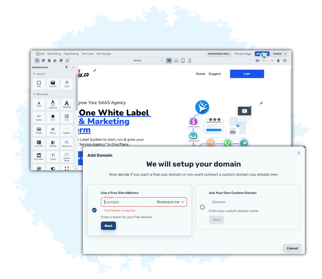 This is a white-label platform. All accounts can have their own white label branding, so you don’t need to worry about designing or customizing your own software.